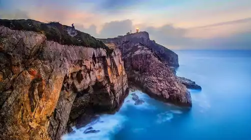 The deserted village is covered with a dark green shell by ivy. Walking in it is like walking into the Wizard of Oz. Standing on the cliff of the east cliff, listening to the sound of the sea waves crashing against the rocks, if you go there on a sunny day, accompanied by the setting sun in the evening, it is like a glass of mellow wine entering your throat, a slightly tipsy but also intoxicating beauty.