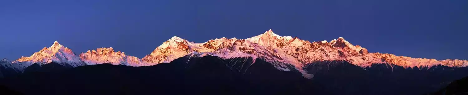 The Meili Snow Mountain, a vast, north-south snow-capped mountain range located east of Zayu County, Tibet, and west of Yunling Township, Deqin County, Diqing Tibetan Autonomous Prefecture, Yunnan Province, stretches 150 kilometers. It is a renowned pilgrimage site in Tibet and a sacred site circumambulated by people from the Kham region (Qinghai, Gansu, Yunnan, Sichuan, and Tibet). Thirteen peaks, with an average elevation of over 6,000 meters, are commonly known as the "Thirteen Peaks of the Prince."