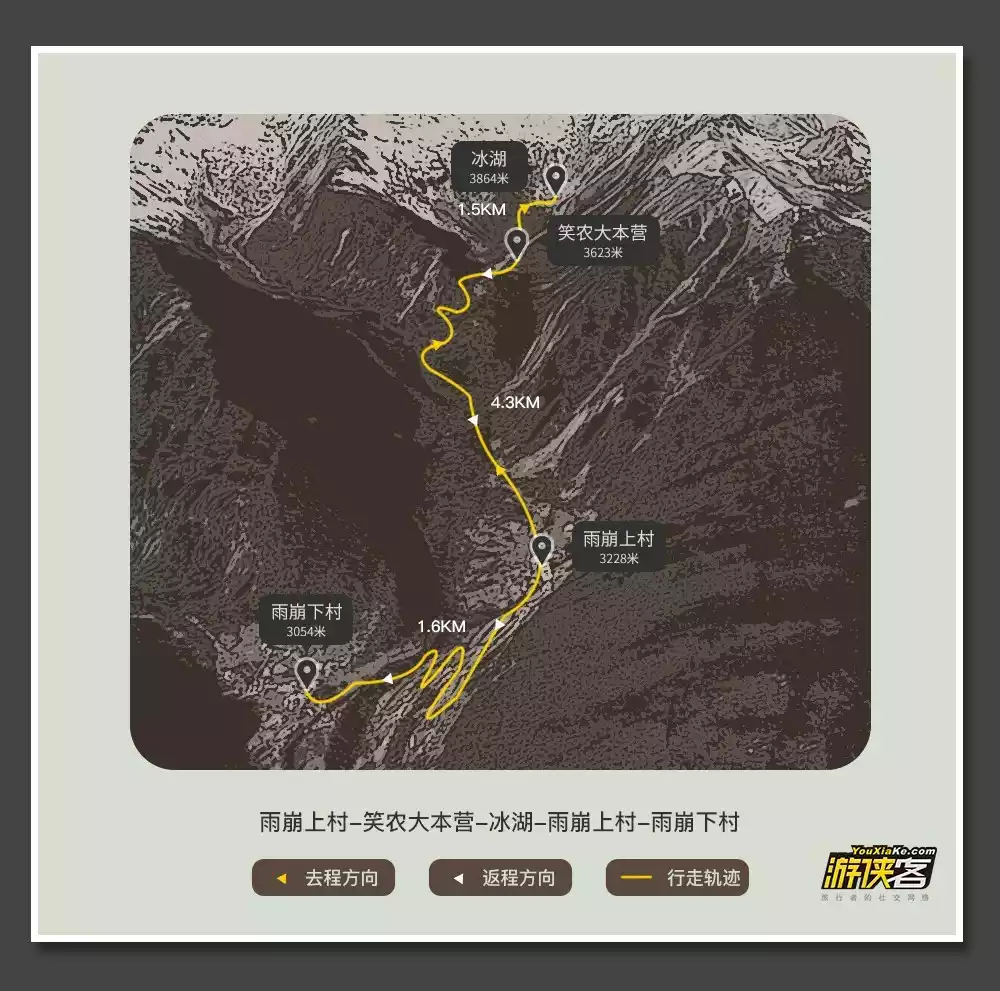 Day 2: Yubeng Upper Village (3228m) - Xiaonong Base Camp (3623m) - Ice Lake (3864m) - Yubeng Upper Village - Yubeng Lower Village (3054m)