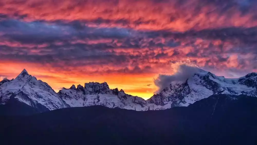 The Meili Snow Mountain is renowned for its majestic grandeur and enigmatic beauty. Legend has it that if one is fortunate enough to see Mount Kawagebo in its true form, then upon ascending the Potala Palace in the future, one will be able to see its silhouette amidst the colorful clouds southeast of the peak. This testament to the mountain's height, its far-reaching brilliance, and its lofty position in the hearts of Tibetans.
