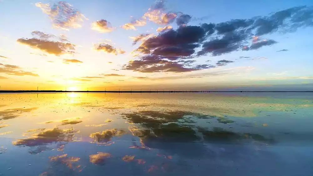 Because evaporation from salt lakes in arid and semi-arid regions is greater than or equal to precipitation and recharge, the water is saturated with high concentrations of salt, as seen in the Greater Qaidam, Lesser Qaidam, Qarhan, Dabusun, and Chaka Salt Lakes. The differences in salt content caused by evaporation during their formation give the lakes their distinct colors. Salt crystals precipitated from some salt lakes also create lines and joints on their surfaces, creating a vibrant, multicolored effect when light refracts.