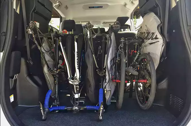 The space inside the car is quite large. After folding down the last row of seats, it can just fit 4 bicycles, making perfect use of the space.