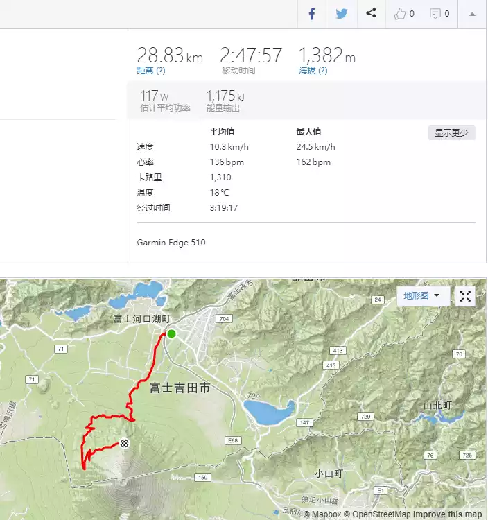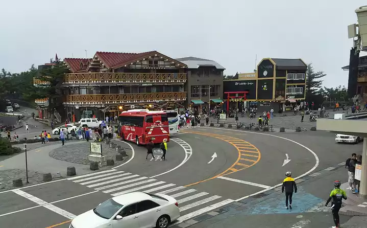 There are a total of 5 stations in the paved road section of Mount Fuji. After riding for a while, I arrived at the first station, which is 1,291 meters above sea level. My impression was that the roads in the five stations of Mount Fuji were very flat, but the space on both sides was very narrow and there was no dedicated bicycle lane. Cars passed by us, which was a bit dangerous. We must pay attention to safety.