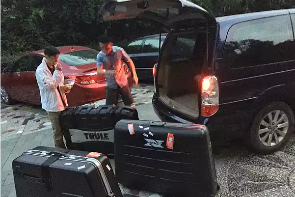 We had a total of 4 bicycles for this ride, including 3 road bikes and 1 folding bike. Packing these 4 bikes was a huge project, so we specially rented a special box for road bikes from the bike shop. The box weighs up to 14kg and is extra long and wide. When boarding the plane, we need to go through the large luggage channel, which costs an extra fee. After testing, the folding bike can be placed in a 30-inch suitcase after being folded for several weeks. The author and his group departed from Shanghai Pudong Airport and tried to check in through the ordinary luggage channel. Unexpectedly, it went through smoothly. It seems that domestic airlines are not very strict in this regard.