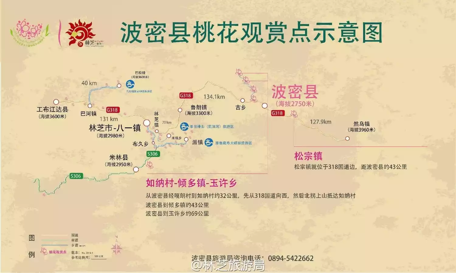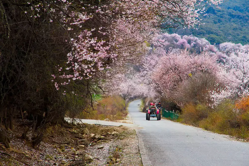 10 kilometers out of Bomi County on National Highway G318, turn right after crossing the Yajiang Bridge and you'll see a sign. Continue along the ditch until you see the peach blossoms you've been longing for.