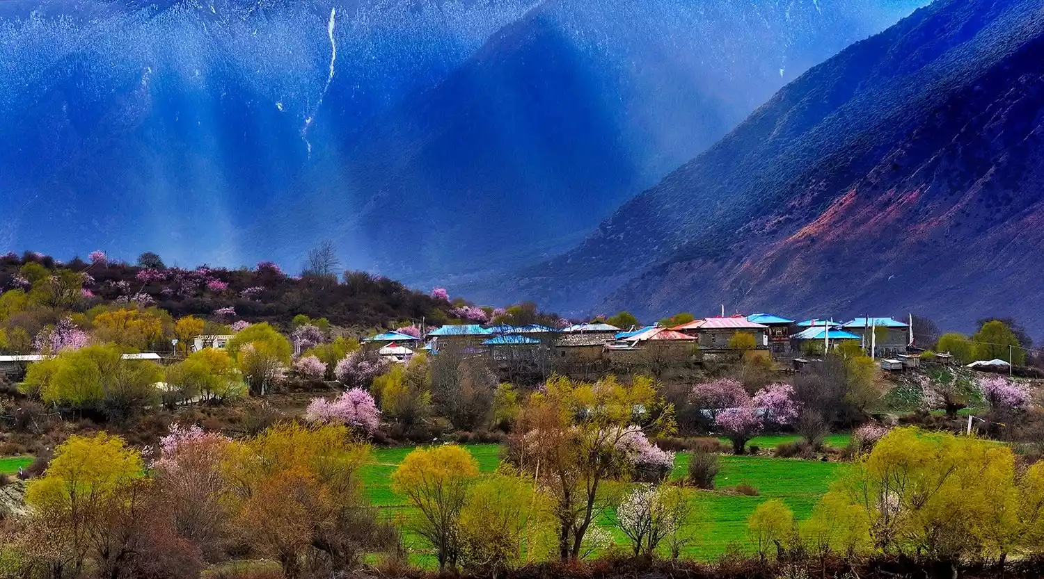 There is such a paradise in Tibet. Every March and April, when the peach blossoms are in full bloom, Tibetan houses are hidden deep in the peach forest. From a distance, the green barley fields and the pink peach forests are intertwined, the roofs are faintly visible through the peach trees, and the snow-capped mountains in the distance embellish this picture.