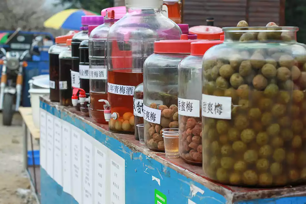 The area is covered in plum blossoms and produces a rich harvest of plums, which naturally leads to a wide variety of plum-related agricultural products. Along the Plum Garden Road, there are many small stalls set up by local villagers, where you can buy local specialty agricultural products after enjoying the plum blossoms.
