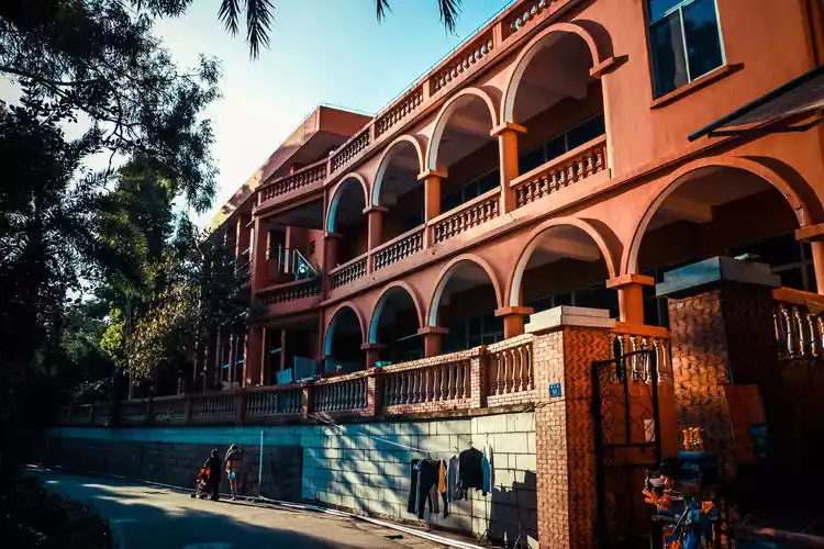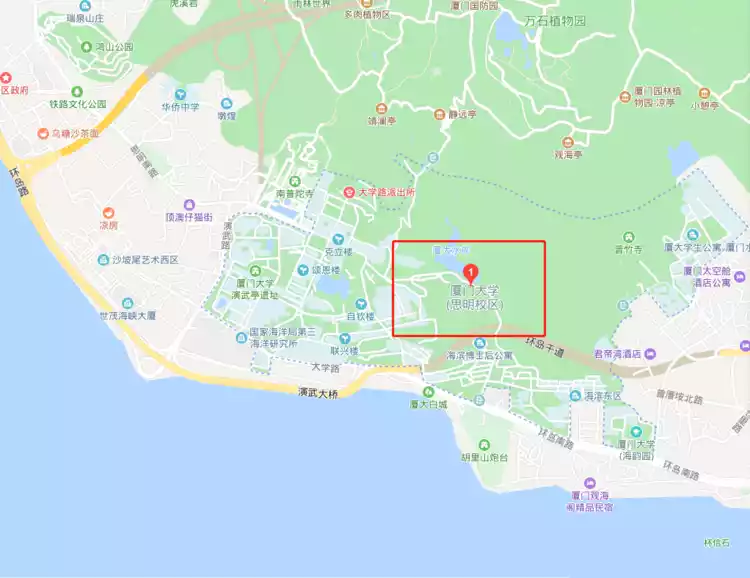 Xiamen University's main campus is located at 422 Siming South Road, Siming District, Xiamen, on the southern tip of Xiamen Island, covering approximately 2,500 acres. Flanked by Nanputuo Temple on one side and the seaside and Hulishan Fort on the other, the university is hailed as one of China's most beautiful university campuses. The campus boasts scenic attractions such as Furong Lake and the Lover's Valley Reservoir, leading to the saying, "Talk about romance at Xiamen University." Many of Xiamen University's older buildings were built by Tan Kah Kee's son-in-law. Their distinctive exposed concrete walls and glazed roofs have earned them the nickname "wearing a suit and a conical hat" (a metaphor for the fusion of Chinese and Western architectural styles). The Jiannan Auditorium and Shangxian Field are particularly magnificent.