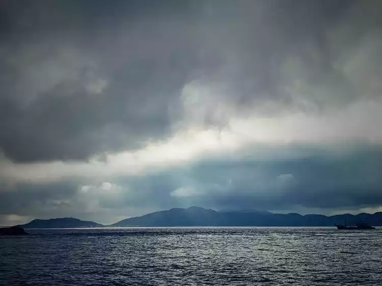 Legend has it that in ancient times, a sister-in-law vowed to worship Buddha. After years of hard work, they saved enough money to buy a boat and sailed across the Lotus Ocean to offer pilgrimage to the mountain. However, just as the boat docked, the sister-in-law's period began. Feeling unclean, she dared not enter the mountain to face the Buddha. The sister-in-law blamed her for not being blessed enough to make the pilgrimage, so she journeyed alone. At noon, the tide rose, pushing the boat further from shore. The sister-in-law sat alone in the boat, hungry and exhausted. Just then, a woman approached from the shore, carrying a food box. She threw stones into the tide and, using them as a step, made her way to the boat. She claimed her sister-in-law had asked her to bring the food box. Upon returning from her pilgrimage, the sister-in-law heard about this and, remembering how she had just seen the sleeve of the Bodhisattva Guanyin wet while worshipping Buddha, she had a sudden realization, realizing it was the Bodhisattva's doing. She hurried back into the mountain to kowtow before Guanyin.