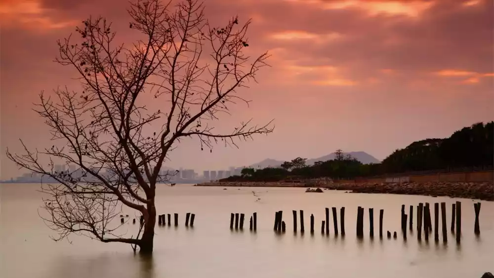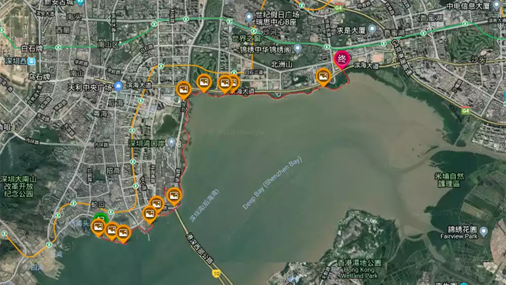 The Shenzhen Bay Coastal Boardwalk stretches from the mangroves to the Sea World, with vast mangrove wetlands to the east and a long coastline to the west. There are 10 themed landscapes. At a glance, the opposite bank is full of high mountains, with few urban buildings, a breeze, clear water, blue sky and white clouds, and the scenery is picturesque.