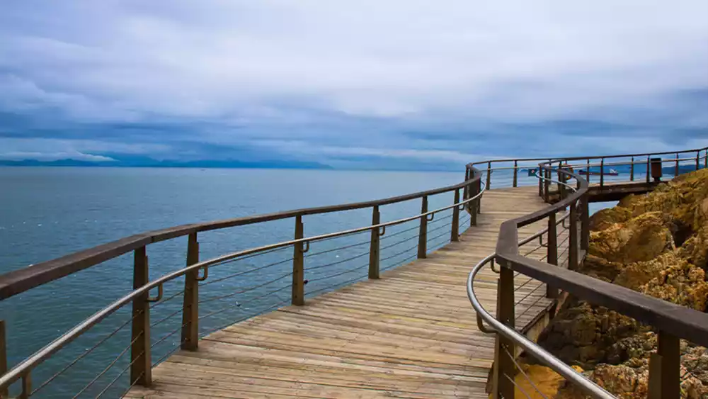 Encounter the beautiful seaside boardwalk, feel the impact of waves hitting the rocks, and overlook the vast sea and green mountains!