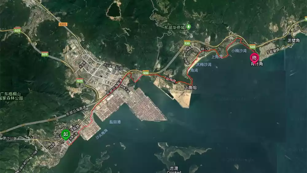 Zhongying Street - Yantian Port - Dameisha - Xiaomeisha - Beizaijiao