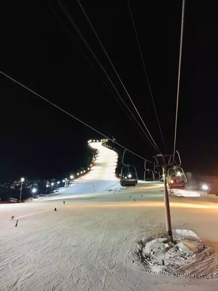 Because there's no sunlight, night skiing is colder and dimmer than daytime skiing. Wearing daytime goggles won't allow you to see anything. I saw that the resort had clear goggles for rent, so I was able to rent one if I needed one.