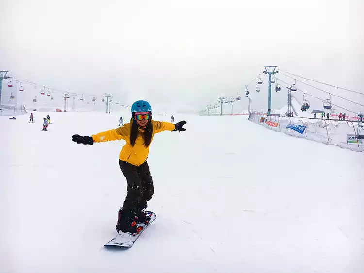 The two intermediate ski slopes in the venue are wide, and it is very enjoyable to ski on both single and double boards.