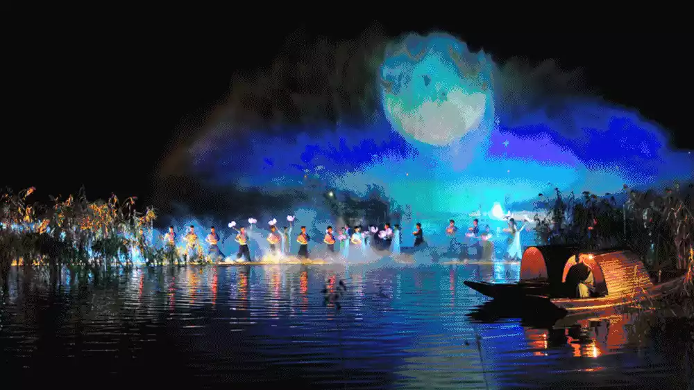 At night, you can capture the tranquil nightscape of Nianhua Bay and watch the 3D water-screen movie "Flowers in Bloom" on Nianhua Lake. You can also stroll along Xiangyue Flower Street and sample local delicacies.