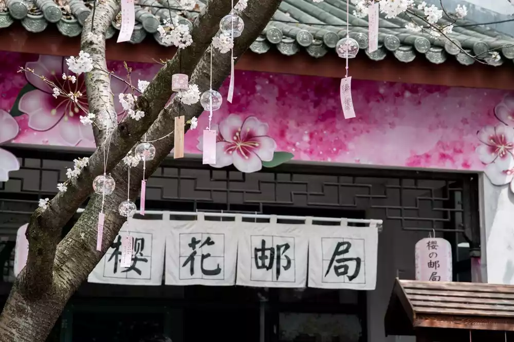 ④During the cherry blossom season, the scenic area has launched Hanfu garden tours, cherry blossom markets, cherry blossom post offices/photoshoots/handmade experiences, and you can also enjoy the sea of cherry blossoms under pink lanterns.