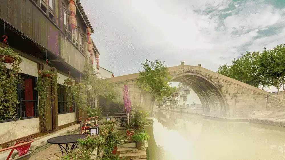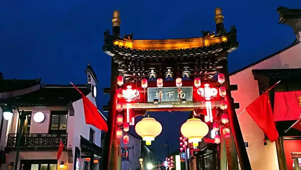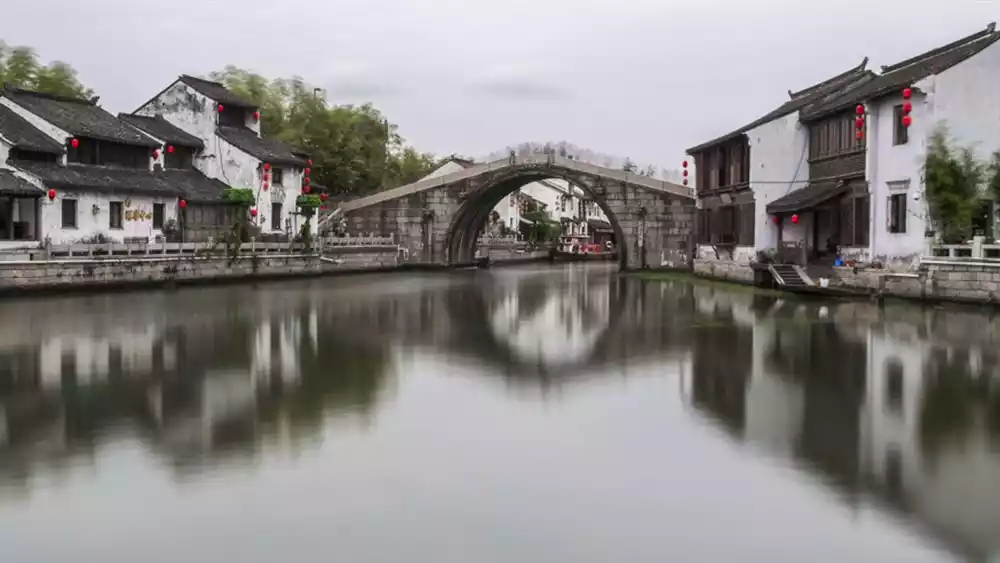 Here you can find memorial archways, folk houses and bluestone roads in the Jiangnan style; compared to Zhouzhuang Tongli, you can see more quiet houses with small bridges and flowing water.