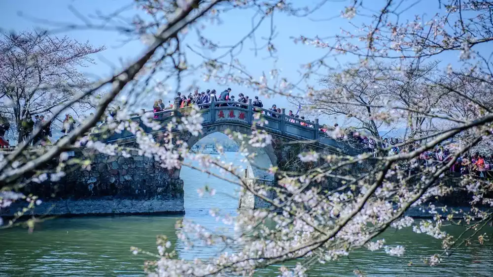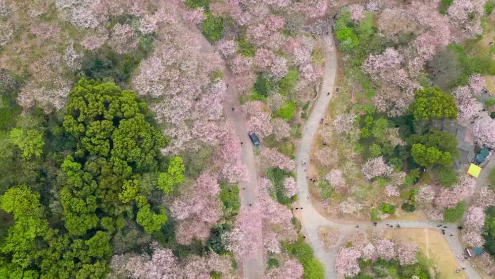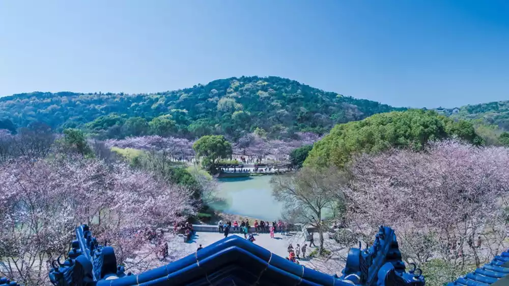Since the first Japanese delegation to China arrived in Yuantouzhu in 1988, they worked with Wuxi residents to plant 1,500 cherry tree saplings. For the past 30 years, large delegations have visited Wuxi annually, creating a vast sea of cherry blossoms in the Friendship Forest. From the Cherry Blossom Viewing Pavilion, you can overlook the entire Sino-Japanese Friendship Forest to the east and the Cherry Blossom Valley to the west, making it a truly exceptional spot for cherry blossom viewing.