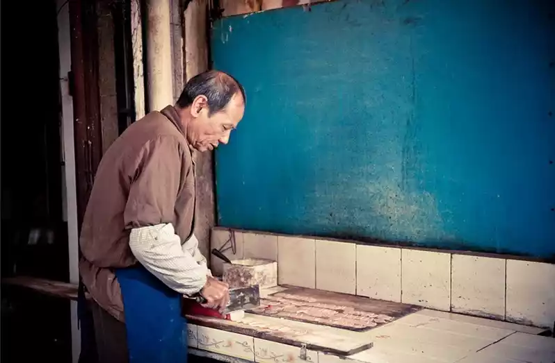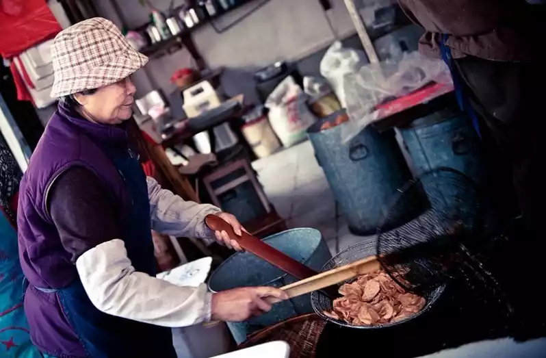 This specialty food of Enping, Guangdong, is said to have originated in the late Qing Dynasty. Some say it was made into portable military rations for marching and fighting, while others say it was a byproduct of the bumper soybean harvest that was inconvenient to store.