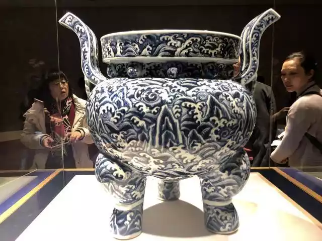 Although there is no official kiln mark on the blue and white Shoushan Fuhai pattern furnace, it is not only an official kiln porcelain of the Xuande period of the Ming Dynasty, but also an important artifact among official kiln porcelains. The furnace is 58 cm high and its shape imitates a bronze tripod.