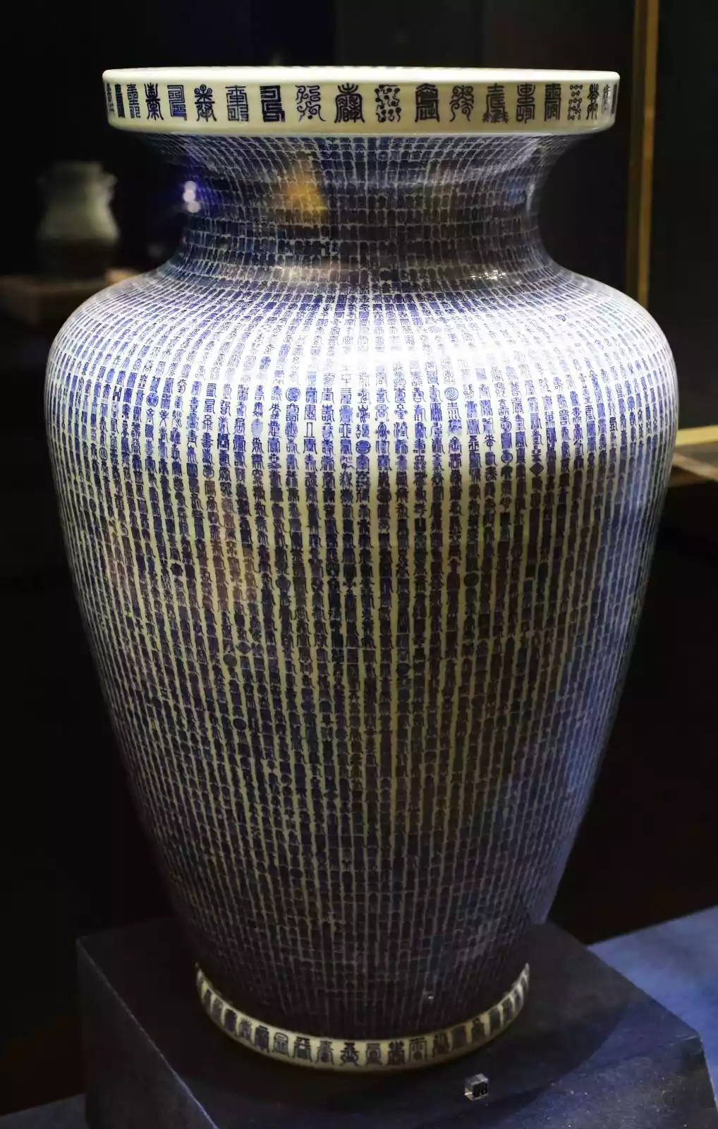 This vase was a birthday gift from his ministers on Emperor Kangxi's 60th birthday. It has a thick body and is fully glazed. The entire body of the vase is painted with longevity patterns. The blue and white porcelain vase is more than one meter high. There are 48 longevity characters written on the mouth and the bottom of the vase. There are 70 lines and 130 rows of longevity characters on the body of the vase, totaling about 10,000 "longevity" characters, so it is called the Wanshou Vase.