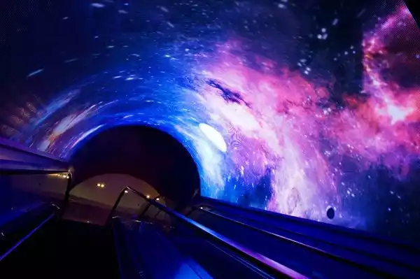 The Digital Museum Elevator, titled "Time," uses flowing water, wind and sand, and the changing starry sky to embody the unique role of "time" in human civilization.
