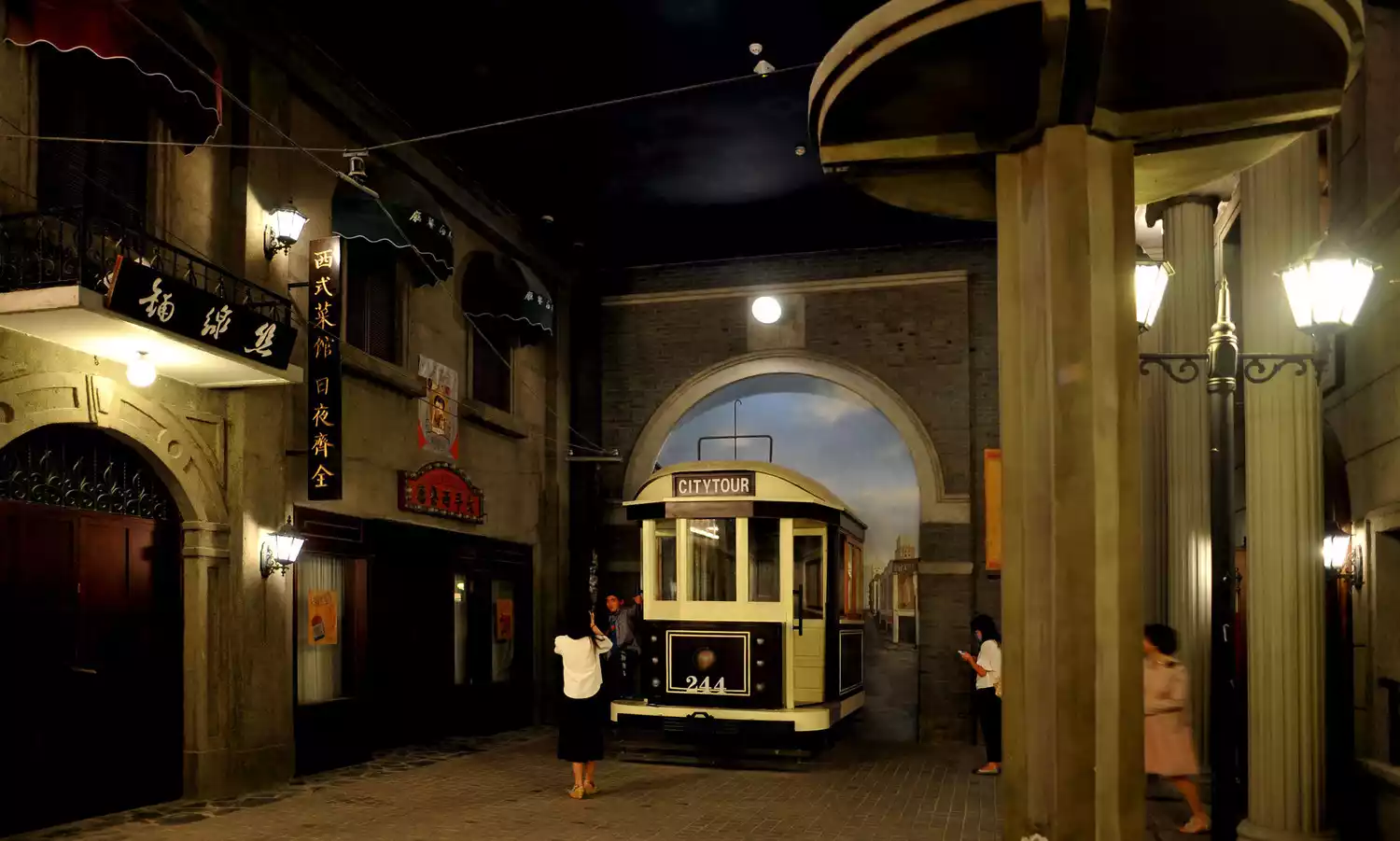 While showcasing the architectural features, the entire exhibition hall dynamically restores the urban living conditions of the time. The sky, roads, street lights and ancillary facilities are simulated and reproduced using sound, light, electricity and other technologies. The overall style is retro and nostalgic, allowing the audience to transcend the barriers of time and space as if walking on the streets of the Republic of China.