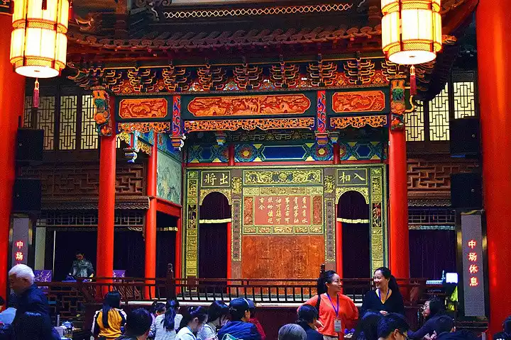 ▲Inside the Intangible Cultural Heritage Museum: an antique teahouse with a wooden structure