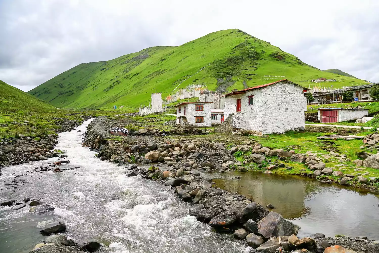 Nestled between the mountains and the water, the few houses are like vibrant dots amidst the meadows. In summer, the lush green meadows stretch northward all the way to Akoli Township, and further north to Guanyinqiao Town on the northern Sichuan-Tibet Highway. Have you already imagined yourself surrounded by a circle of snow pigs, crying out for food?