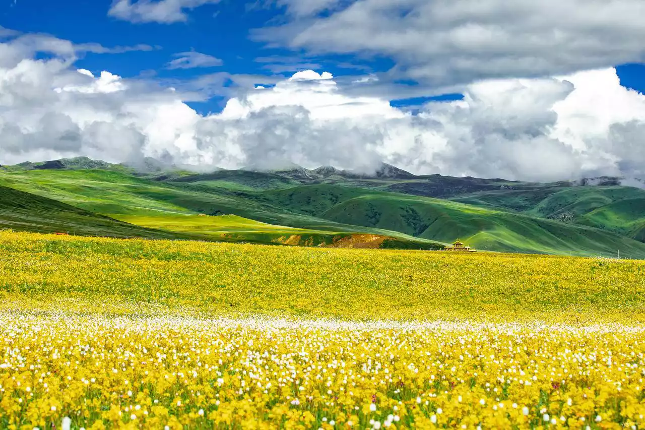 The beauty of Emutang complements the distant mountains. In June, the Hongyuan Sea of Flowers must be the most beautiful in Sichuan. The endless green grass on the plain has attracted many internet celebrities to check in here.
