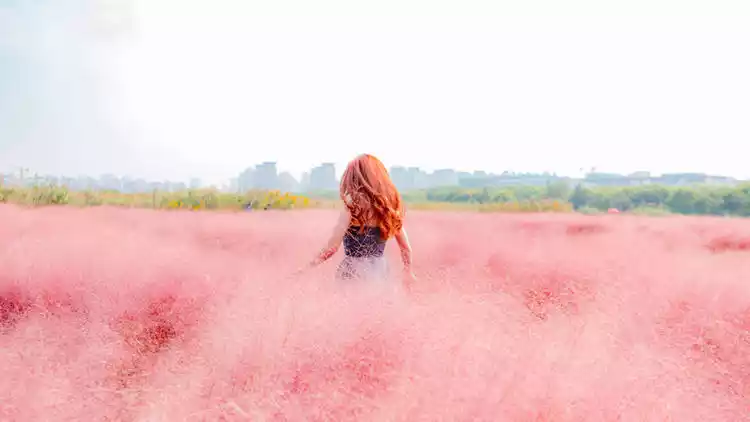 In Zhouzhi, not far from Xi'an, there's a 300-acre patch of pink muhly grass. The grass sways in the wind, resembling clouds and mist, a dreamlike illusion. It's a popular grass site, like a sea of pink. Enjoy posing and taking photos, satisfying your pink girlish heart!