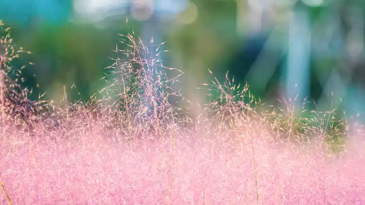 The most amazing thing about pink muhly grass is that it may seem inconspicuous when viewed alone, but when it appears in groups, it creates a pink and tender visual effect, just like a magnificent sea of flowers like clouds and mist, accompanied by waves of pink in the autumn breeze.
