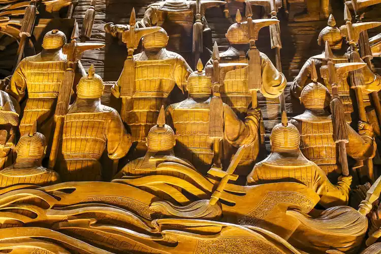 The Military Saint Palace is the highlight of the entire Sun Tzu Cultural Park. Standing in the square in front of the palace is the large dynamic sculpture "The Legend of Sun Wu." Sun Wu's life was legendary, and the Battle of Baiju during the Thousand-Mile Raid on Chu was the pinnacle of his life. The sculpture is based on this battle.