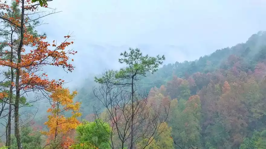 Where the Tropic of Cancer passes through Guangdong, there is a mountain with a top that looks like a bun on a grandmother's head from a distance. It is a beautiful mountain all year round, and the scenery in autumn is the most charming. It is the only place in Guangdong with red leaves all over the mountain. It is suitable for viewing whether it is sunny or rainy, and it is even more charming on rainy days.