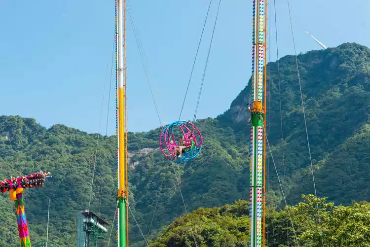While returning to the innocent joy of childhood, you will also experience extreme screams. The equipment is built on the edge of a cliff, as high as an 8-story building, with huge steel arms. You can experience free 360-degree rotation in the air, weightlessness and falling. At this time, you can only scream.