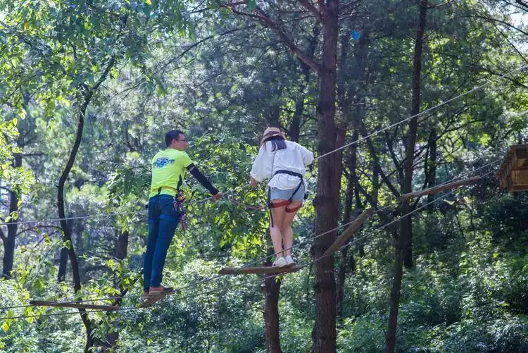 The scenic area has designed six jungle leap routes, varying in length and difficulty, including routes suitable for families. The various ways to navigate, such as zip lines, plum blossom piles, and ropes, are quite challenging. The one-way movement is unstoppable, making this place a love-hate attraction for many.