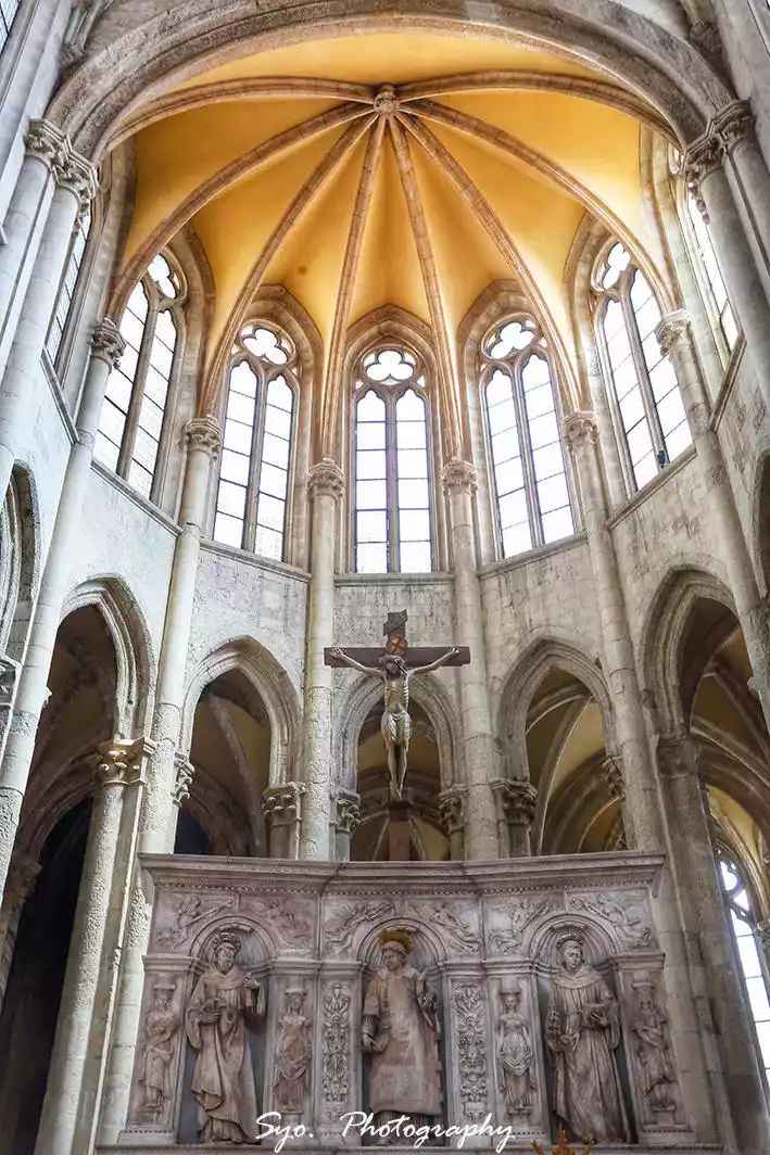 When we entered a small chapel inside the church, a beam of sunlight came in, passed through the glass, and cast on the golden decoration inside, which looked extremely beautiful, just like the sentence in the Bible: "God said, "Let there be light," and there was light.