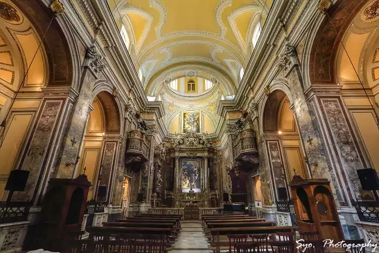 Beneath the church lie the remains of ancient public buildings dating back to Greco-Roman times. Remains of buildings dating back to the 4th century BC have been discovered, including the former Piazza San Gaetano, the macellum (Roman food market), which remains the heart of the modern city above ground.