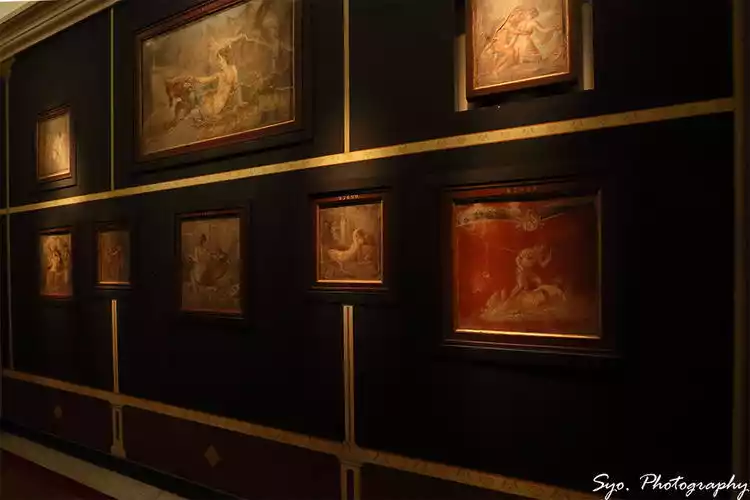 The secret room displays various sexual statues, including one of a shepherd god with malicious intent towards a female goat, as well as nine paintings depicting sexual positions, which clients used as reference materials for requesting sexual services. This is a showcase for tourists of the prostitution culture of Pompeii at the time.