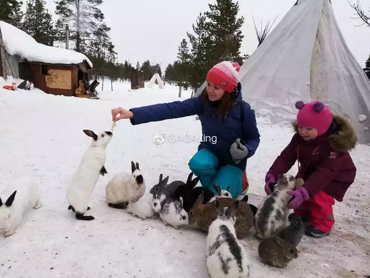 In addition to being able to have close contact with reindeer, there are also rabbits and Arctic foxes, and you can also pet the three silly animals in the snow. The animals here are super cute.