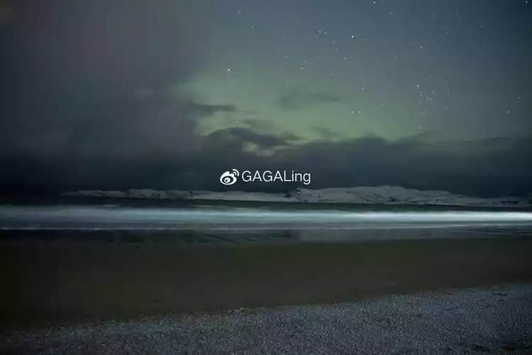 The aurora is flowing, and the red house, the bay, the shipwreck, the pebble beach and the back mountain are all good foregrounds for photographing the aurora.