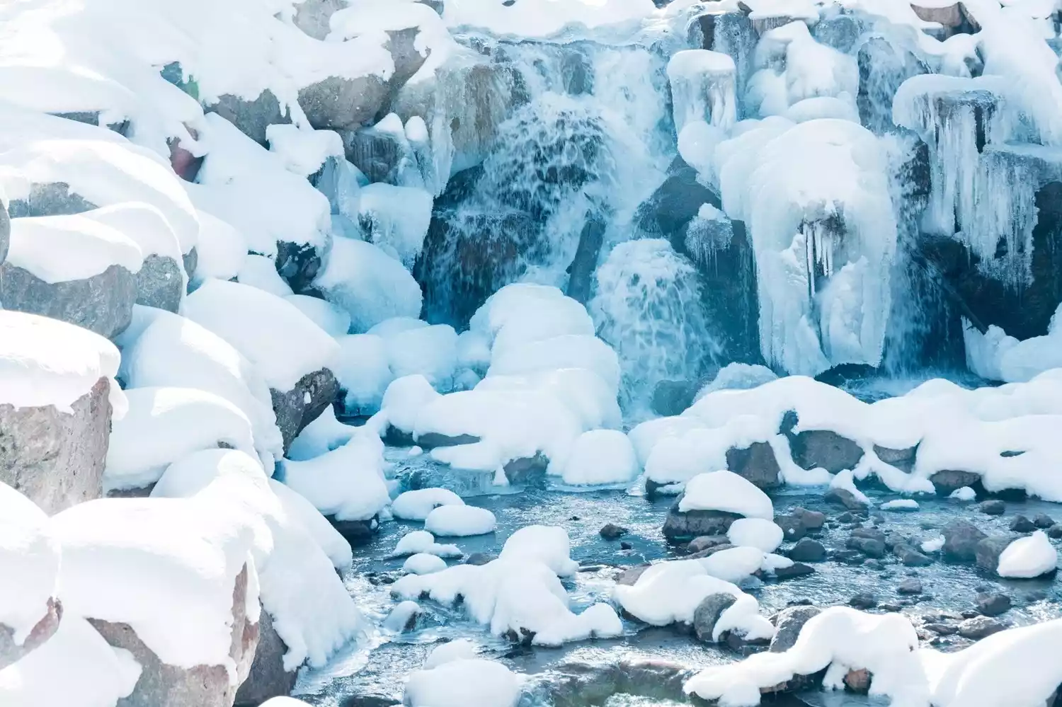 In winter, the Bipenggou Scenic Area is blanketed in white snow. Visitors can admire towering peaks, snowy forests, icy waterfalls, snow-capped mountains and lakes, and red rock formations. Every step reveals a breathtaking view of northern China.
