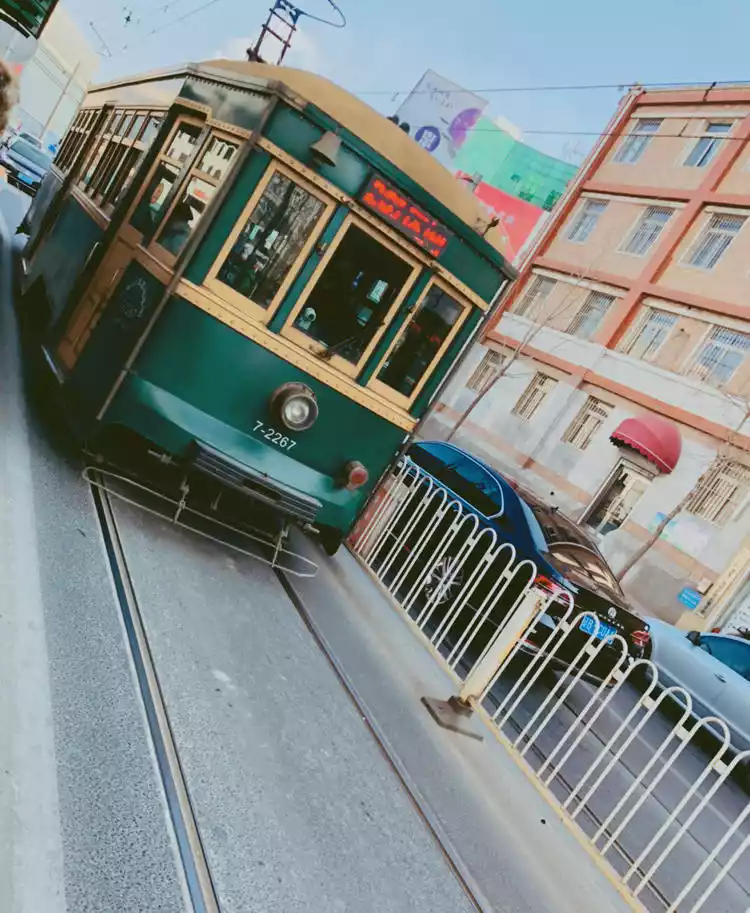 There are two tram lines, 201 and 202. Some of the vehicles on Line 201 are still in the style of those before the liberation, which is very retro. I waited for a long time before I finally got the old-fashioned tram. When I got on the tram, I felt like I was in another world, dreaming back to a hundred years ago.