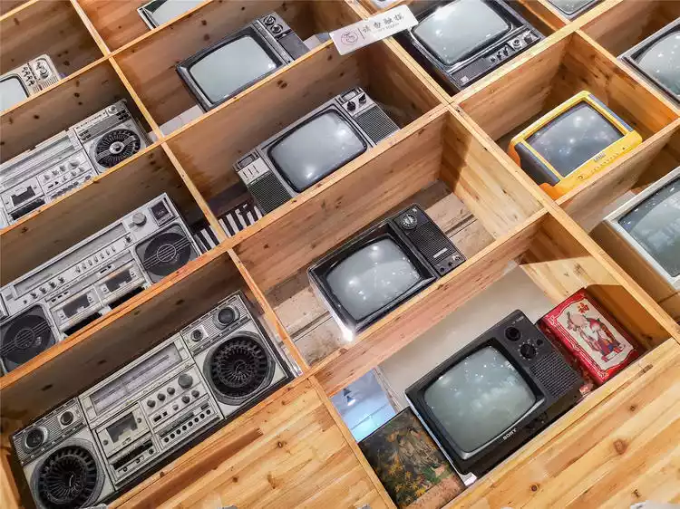 Various old televisions, in different colors and styles, tell stories unique to their era. Although the screens are no longer lit, the fragments of memories that emerge in the mind will never disappear.