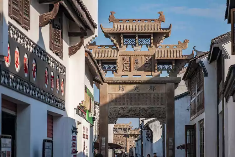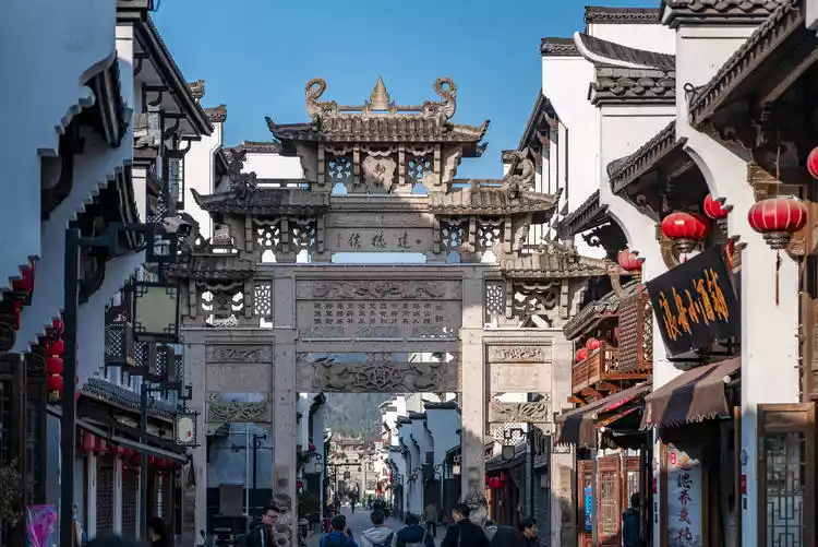 Meicheng Ancient Town is located in a place with beautiful mountains, clear waters, outstanding people and favorable enviroment. It is backed by Wulong Mountain and faces Sanjiangkou. Xin'an River, Lan River and Fuchun River converge here. It is nestled between mountains and waters, with beautiful scenery and comfortable environment. The ancient town is safe and the sun shines warmly in the winter afternoon.