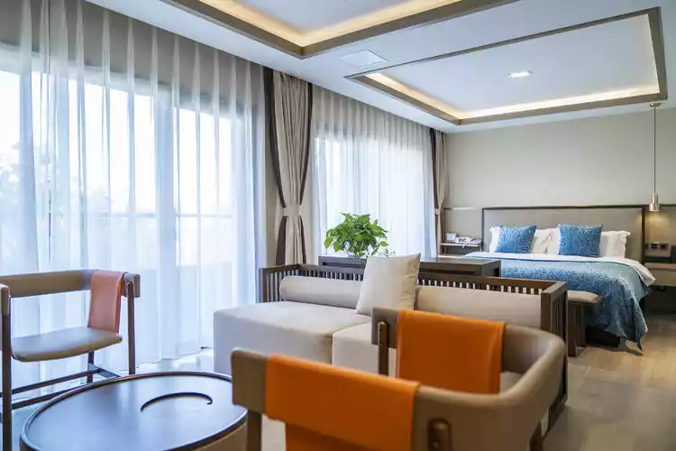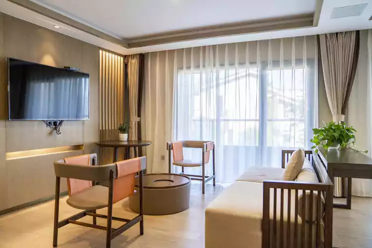 The single-family villas are named as Mountain Residence, Water Residence and Cloud Residence to distinguish their different characteristics. Each villa contains four rooms of different types, and the landscape is also different. The bottom floor is designed as a living room, which includes a separate private courtyard. The rooms can be booked individually, and the villa can be booked as a whole. It is a suitable choice for vacations with families and friends, and is also suitable for group travel, banquets, parties and other activities.