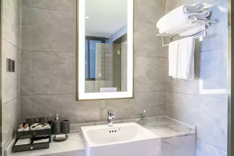The washroom is separated into wet and dry areas, the separate washbasin is clean and tidy, the gray, black and white tones are very high-end, and the toiletries are customized by themselves, and the quality is quite high after personal testing.