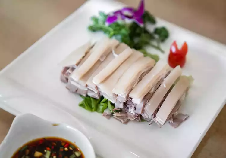 Compared with Jiangnan cuisine and Northwest cuisine, this white-cut lamb dish fully demonstrates the tenderness and delicacy of Jiangnan. The lamb is handled very cleanly, and the skin part is selected, with fat and lean parts. The crystal clear leather is chewy, the lamb is delicate, and the mutton is full of mutton flavor.