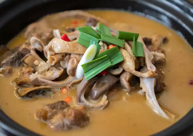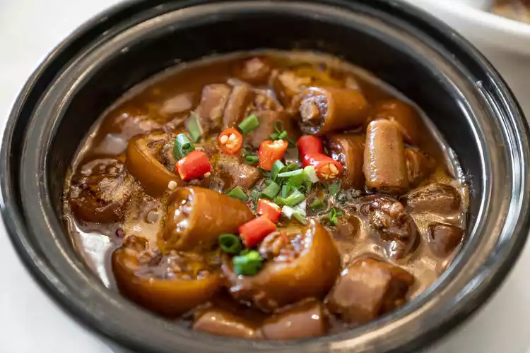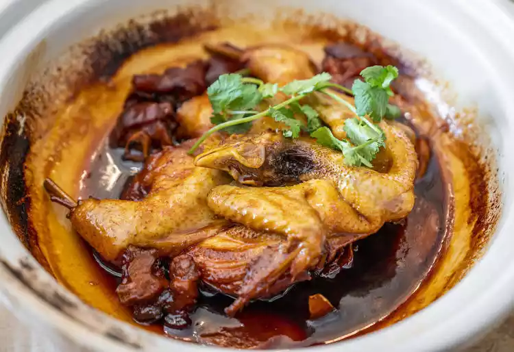 Palace Han Steamed Chicken is one of their most popular specialties. The pig's feet and the whole chicken are put into a casserole together and stewed until the soup is thick and then the heat is turned off. The caramel color along the wall of the casserole is a sign that the dish is done, and the aroma is overflowing. The chicken is so soft that it can be easily separated with chopsticks. The chicken skin is fragrant and glutinous and the fat has long melted, making the taste more refreshing. The pig's feet are chewy and full of flavor, and they are full of soup, which is very memorable.