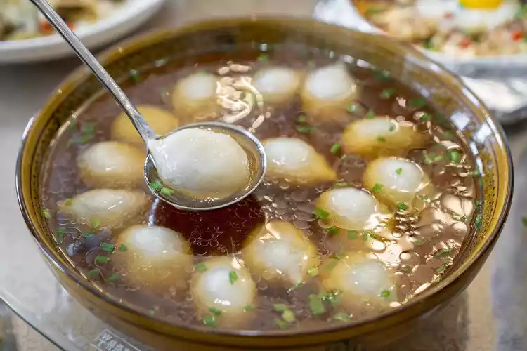 Handmade glutinous rice balls are also a specialty of Jiande. It is surprising to see that they are so big and called glutinous rice balls. Moreover, these glutinous rice balls are not sweet but salty, with fillings of minced meat and some vegetables, and the taste is quite good.